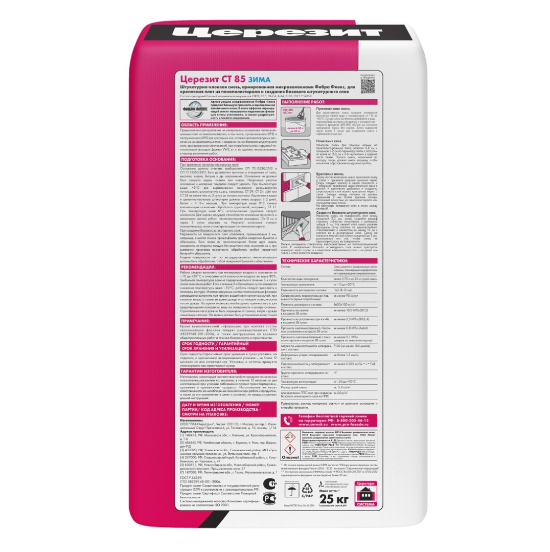 Штукатурно-клеевая смесь Ceresit СТ 85 для пенополистирола Зима (25 кг) в Ваде