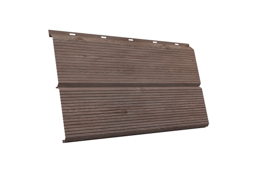 - При использовании покрытия Colority® Print, «ЭкоБрус GL» достигает максимального сходства с клееным брусом. Надежное скрытое сцепление панелей придает фасаду здания естественный вид.