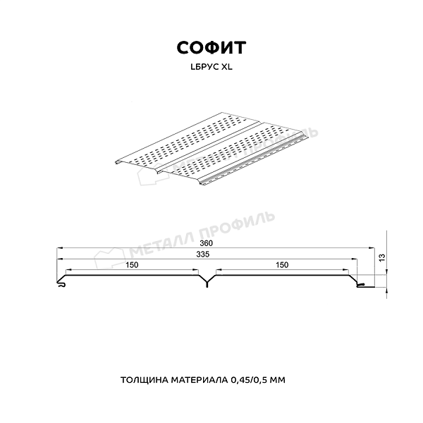 Описание товара: "Софит Металл Профиль перфор. Lбрус-XL-14х335 (VikingMP-01-9005-0.45)"